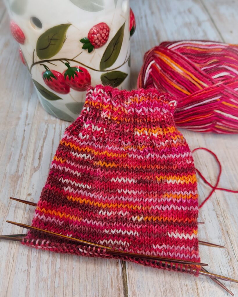 Das Garn lag einer Wollbestellung bei Fischer Wolle als Geschenk bei. Gefiel mir im Knäuel tatsächlich nicht so gut wie nun verstrickt.