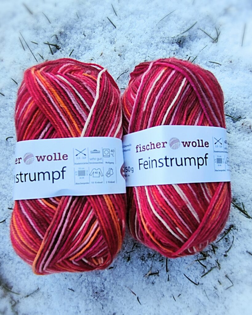 Garn: Fischer Wolle Feinstrumpf in der Farbe 28053. 4fach Sockenwolle 50g/210m.