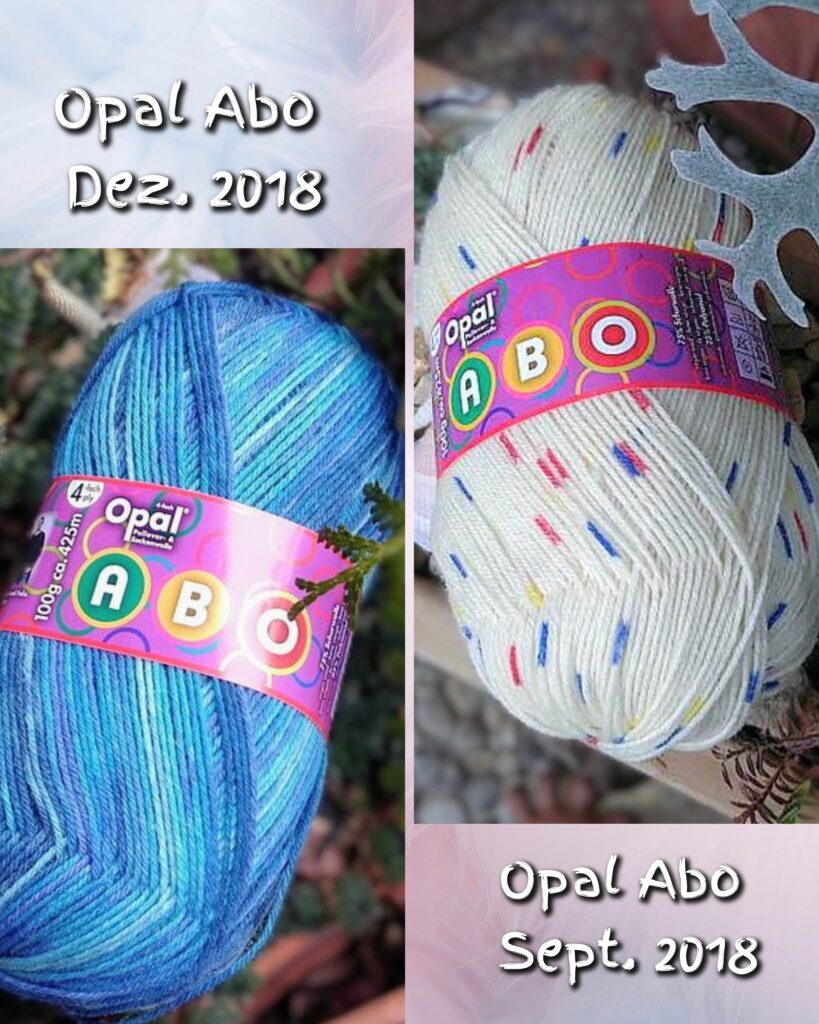 Ich entschied mich für 2 Knäuel aus dem Opal Abo, für die ich bisher keine rechte Verwendung hatte. Hier ein Foto der beiden bisher von mir “verschmähten” Exemplare:
