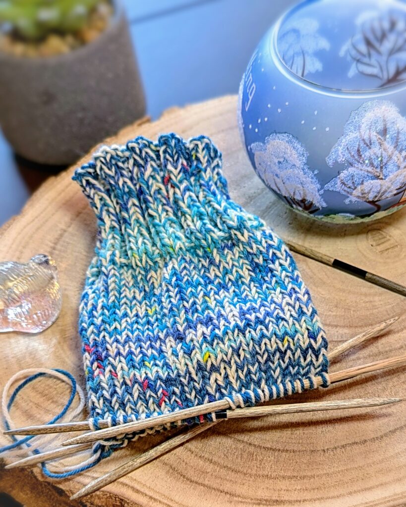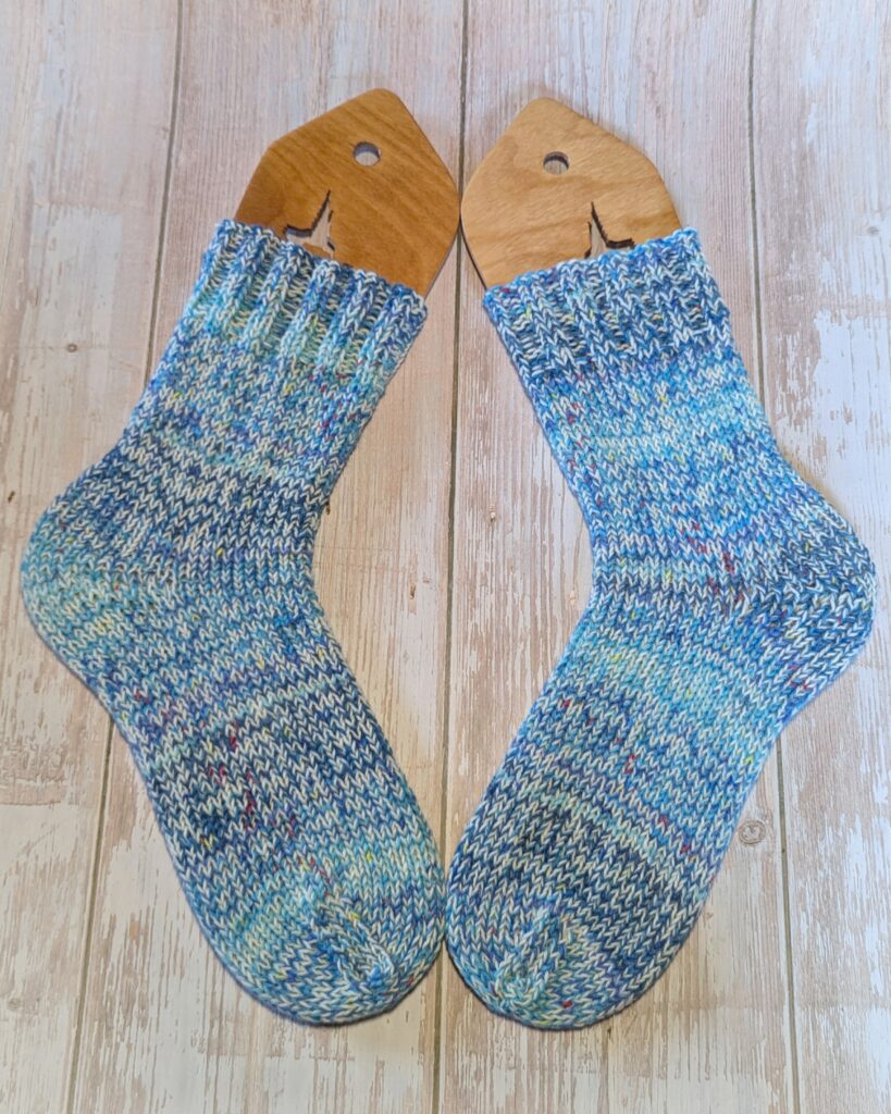 Gestrickt habe ich mit einer NS 3,5mm…eher versehentlich, denn ich wollte sie eigentlich mit 4mm stricken und erst bei der zweiten Socke fiel mir auf, dass ich mich wohl vergriffen hatte. Aber sie passen perfekt und vermutlich wären sie mir mit 4mm tatsächlich etwas zu weit geraten. Insofern sollte es wohl so sein.🙃