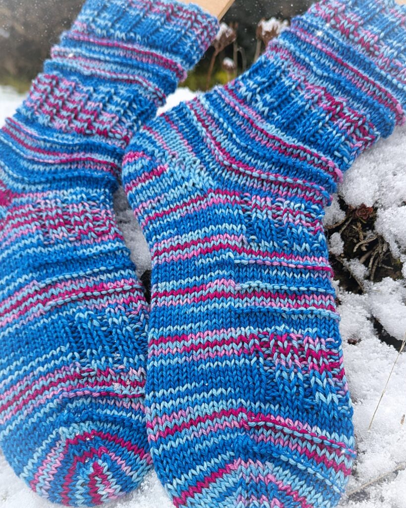 Ich entschied mich für ein Paar aus 6-fach Sockenwolle, weil ich diese im Winter am liebsten trage und aber tatsächlich noch gar nicht so viele davon habe.