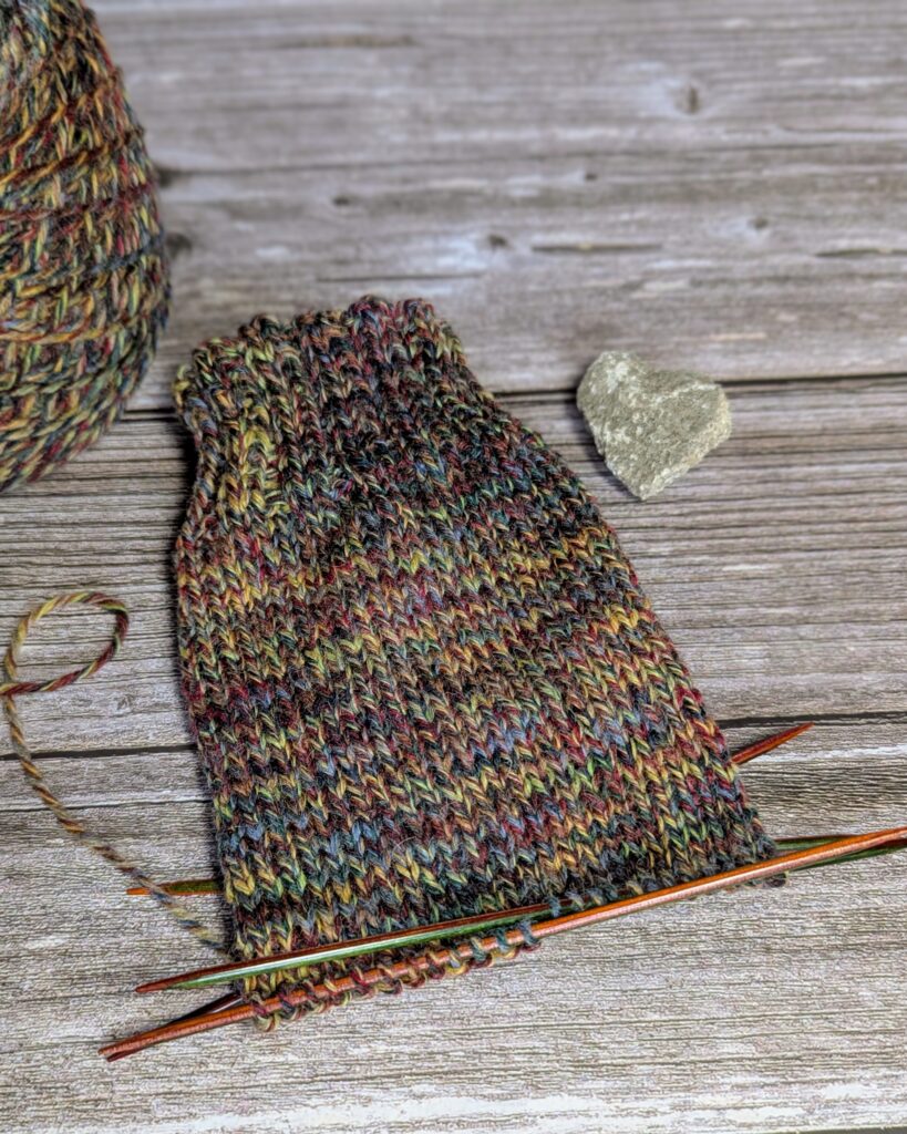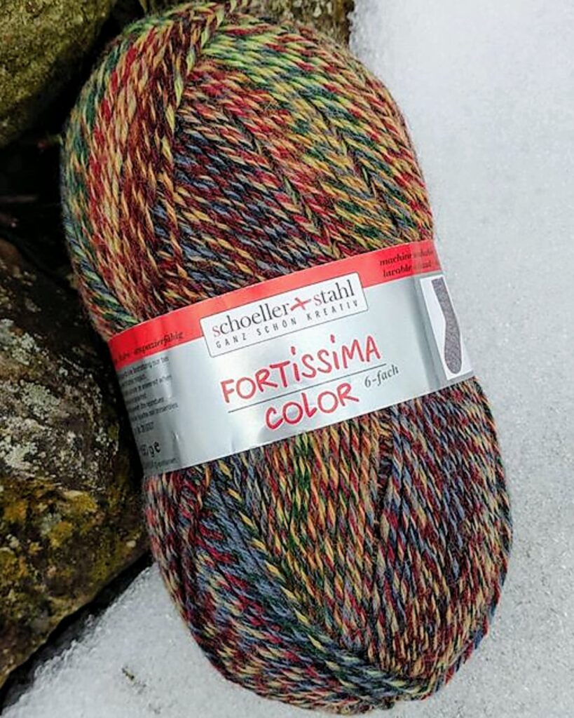 Die Wolle habe ich vor ein paar Jahren bei einem Ausverkauf günstig erstanden. Ich mag die Farben sehr.