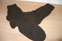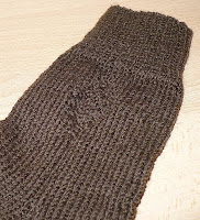 Diese Socken werden ein Weihnachtsgeschenk. Damit die einfarbige Wolle nicht zu trist wirkt, habe ich mich an einem kleinen Muster versucht. Ist leider nicht ganz so gut auf den Fotos zu erkennen, sieht aber “in Echt” wirklich gut aus.