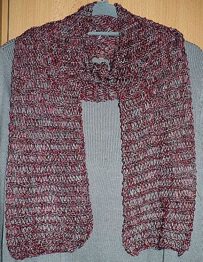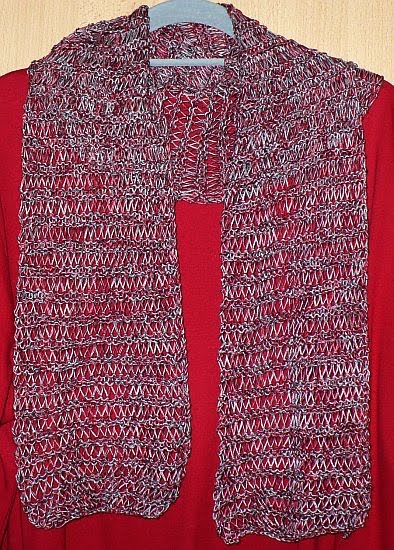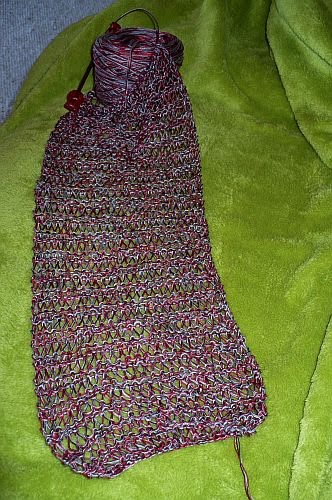 Da mir das Muster des “Fallmaschen-Baktus” im Zusammenspiel mit der “Selavis” Wolle so gut gefiel, ich aber für das ein oder andere Shirt einen langen Schal passender finde, versuche ich mich aktuell an der Umsetzung dieser Idee. Gefällt mir bis jetzt recht gut so.