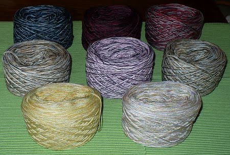 Und wieder einer aus Selavis Garn. Sieht auf dem Bild leider eher schwarz aus, dabei besteht er aus Fäden in dunkelblau, anthrazit und hellblau. Etwas besser zu sehen auf dem Foto mit den vielen Selavis Garnen. Es ist das Knäuel ganz oben links.