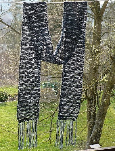 Ein weiterer Fallmaschen-Schal. Diesmal aus Fauveline Garn – für meine Mutter. Auf Wunsch mit Fransen.