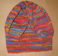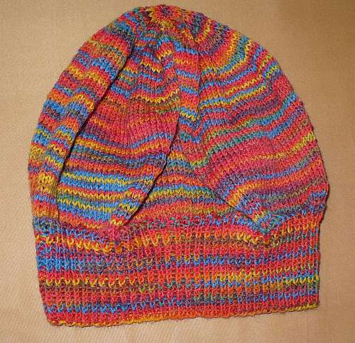Tatsächlich aber war es so, dass ich – nachdem ich die Eierwärmer gestrickt hatte – so begeistert von den Farben dieser Sockenwolle (Schoppel Admiral) war, dass ich mich spontan entschied mir aus der restlichen Wolle noch eine fröhliche Mütze zu stricken.