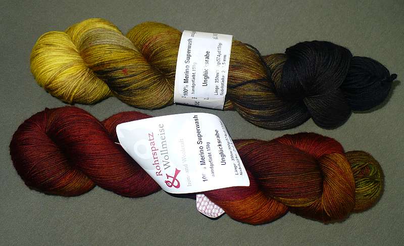 “Unglücksraben” sind Wollstränge, bei denen irgendwas nicht so ganz geklappt hat. Also, entweder eine Fehlfärbung, oder Knoten im Strang oder das Gewicht stimmt nicht ganz…….. und die deswegen etwas günstiger zu haben sind.