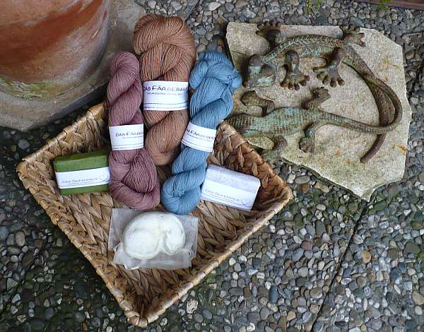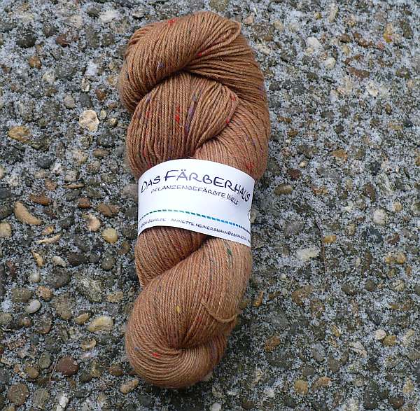 Da entdeckte ich kürzlich diese wundervolle Homepage “Das Färberhaus”, war sofort hin und weg von der wunderschönen, pflanzengefärbten Wolle, fand eine Farbe die ich schon ca. 1 Jahr lang vergeblich suchte und hatte daraufhin sehr sehr netten Kontakt mit der Inhaberin.