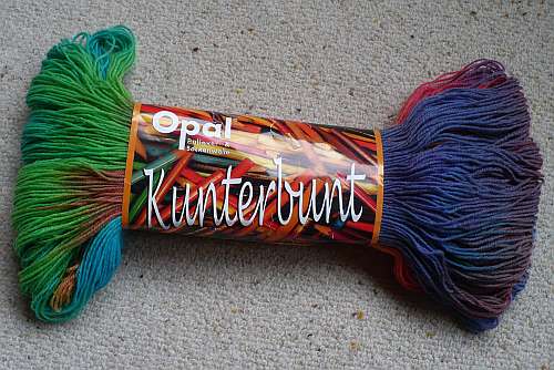 Das “kunterbunte” Garn (Opal Handgefärbt “Kubterbunt”) macht seinem Namen jedenfalls alle Ehre. Gefällt mir besser als ich zunächst dachte.