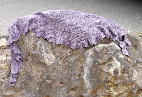 Gestrickt aus Wollmeise 100% Merino – ein sog. “Unglücksrabe” – der Farbe “Feldmäuschen”. Grau, mit einem Hauch von Rosa (was leider auf den Fotos nicht wirklich einzufangen war).