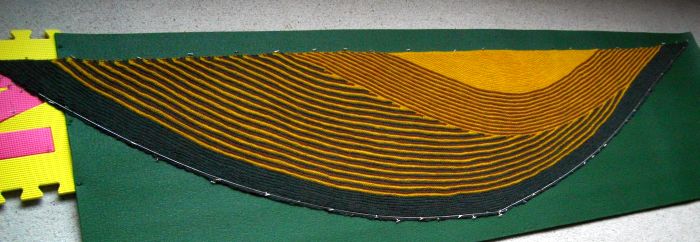 Nachdem einige Strickerinnen im Vorfeld bereits darauf hinwiesen, dass der Rand extrem stramm wird, habe ich mich am Tipp einer Strickerin orientiert jeweils nach der ersten Masche in jeder Reihe einen Umschlag zu machen, den man in der Reihe darauf wieder fallen lässt. Mit dem Resultat bin ich absolut zufrieden.