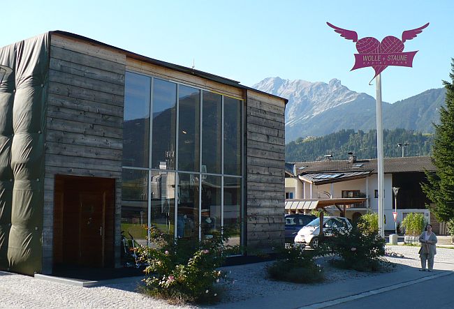 Im Februar 2012 entdeckte ich in der Strickzeitschrift “Verena” einen Artikel über einen interessanten Wollladen in Kolsass/Österreich (Tirol), namens “Wolle + Staune” . Nach kurzer Recherche stellte ich fest, dass der Laden gar nicht sooo weit entfernt (ca. 2 1/2 Std) von unserem Urlaubsort diesen Herbst  liegt.  Auf jeden Fall einen Tagesausflug wert!