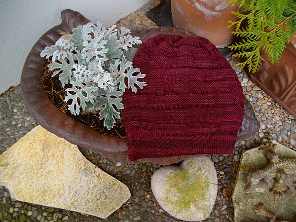 Ich habe mich für 8 (statt der vorgegebenen 10) Linksrippen entschieden, da ich die Mütze nicht so sehr “beutelig” wollte. 7 Hätten wohl auch gereicht, da sie nach dem Baden ja noch ein Stückl größer wurde.