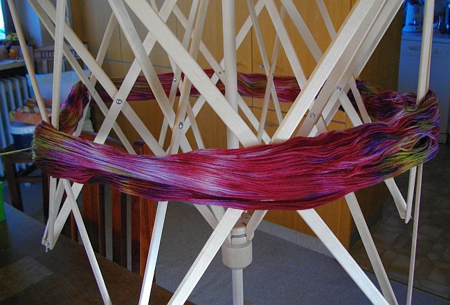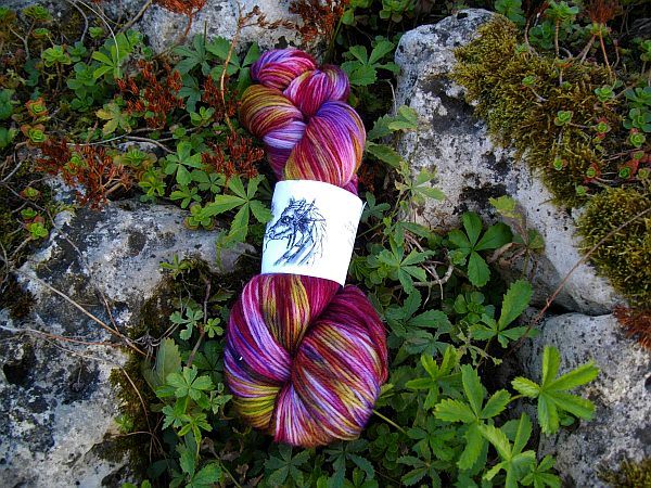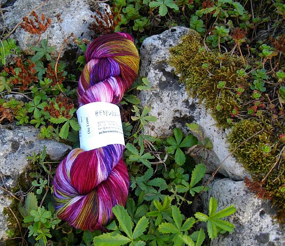 Verwendetes Garn (einmal mehr) die herrliche Luxussockenwolle von Drachenwolle (100g/LL 400m). Farbe “Die Ernte” (Vollmond Sept.2012).