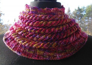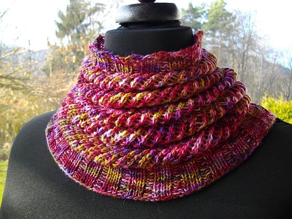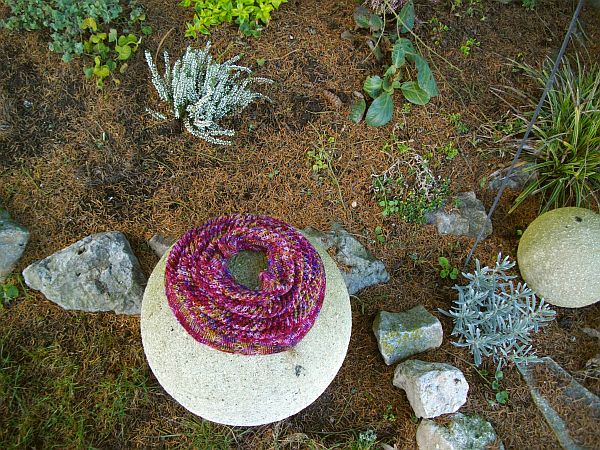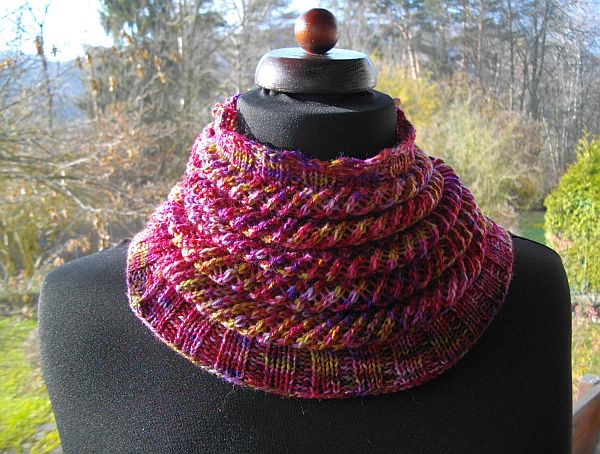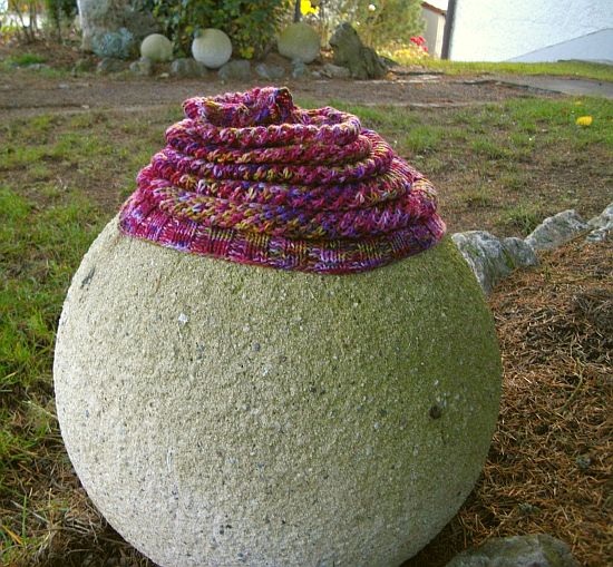 Diesmal in Beerentönen und etwas halsnäher (140 Maschen unten/80 Maschen oben).