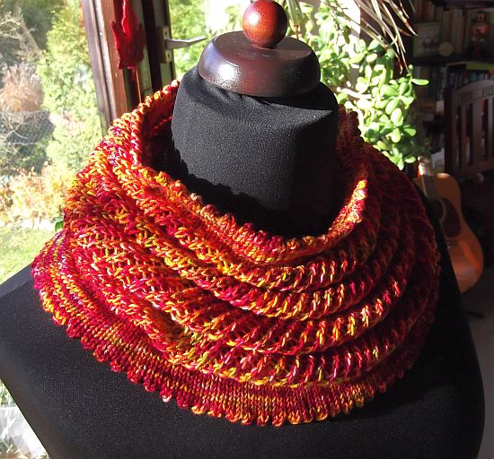 Der Willow Cowl stand eh schon eine Weile auf meiner Favoritenliste und da bot es sich an beim entsprechenden KAL der Drachenwoll-Gruppe mitzumachen.