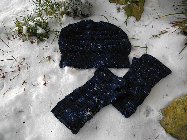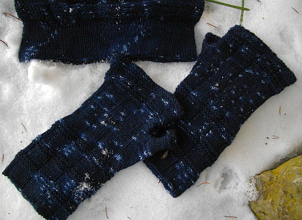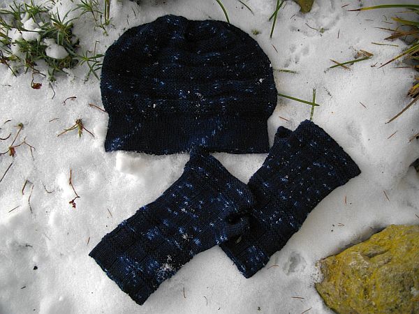 Natürlich brauchte ich dringend einen “Zweitwurm”. Aus dem Restgarn habe ich mir dann schnell noch Handstulpen (nach eigener Idee) gestrickt.