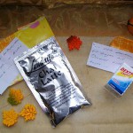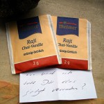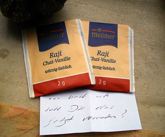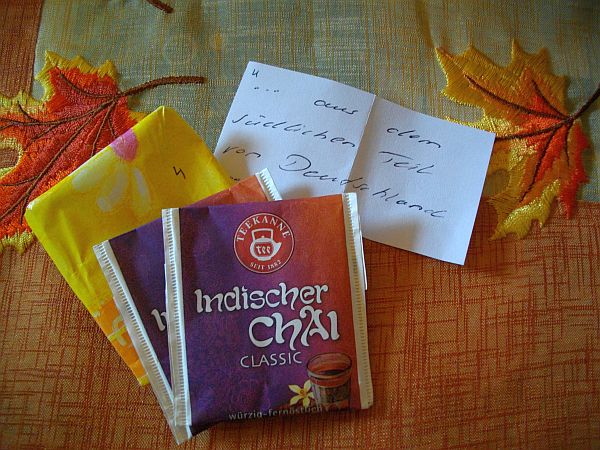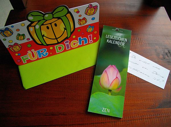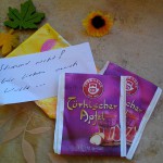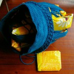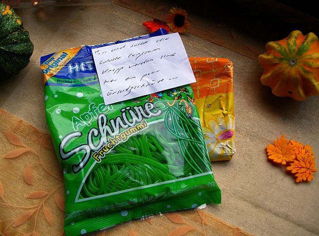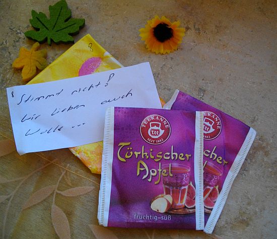 Es waren 11 verpackte Geschenke in einen wunderschönen Strang petrolfarbener Wolle gewickelt, die es galt nach und nach freizustricken.