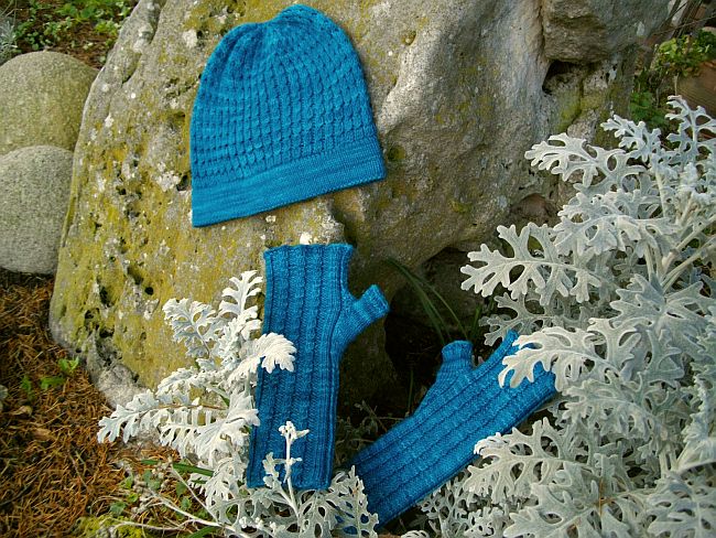 Dieses Set aus Mütze und Handstulpen entstand im Rahmen eines Wickelwichtelns einer Gruppe bei Ravelry.