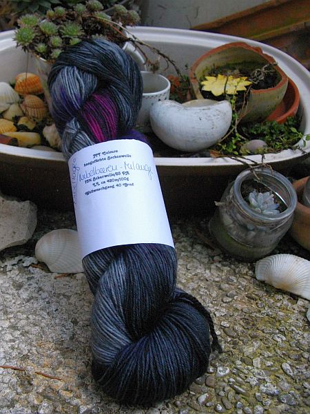 Verwendetes Garn: Sockenwolle von “Frau Odersocke” (ein wirklich herrlich weiches Sockengarn in immer wieder neuen, wundervollen Färbungen!!!) in der Sonderfäbrung: Nebeltage “Nebelbeeren”.