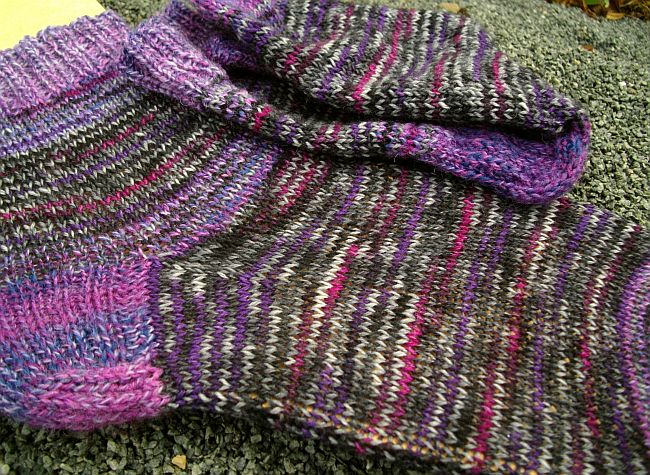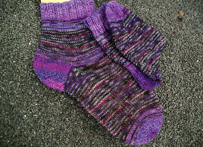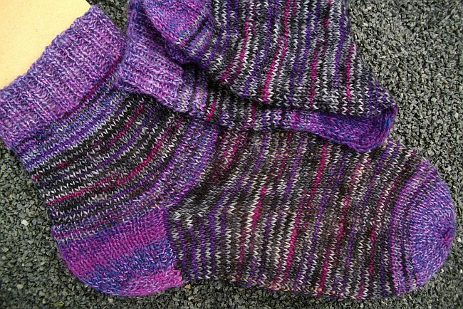 Uuuuuuuuuund weil ich das Garn so toll fand, entstanden aus dem Restgarn – in Kombination mit einem zufällig passenden Rest Industriewolle noch ein Paar Stinos.