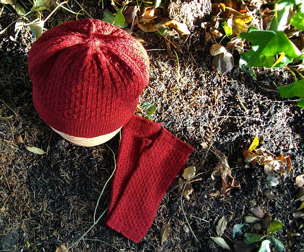 Gewählte Nadelstärken: Bei derMütze 3mm für das Bündchen, 3,25mm für den Rest; bei den Armstulpen 2,75mm.