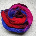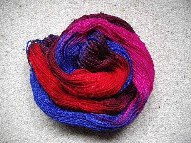 Verwendetes Garn: 6fach Merino von Frau Odersocke in der Färbung “Blüten und Beeren”.