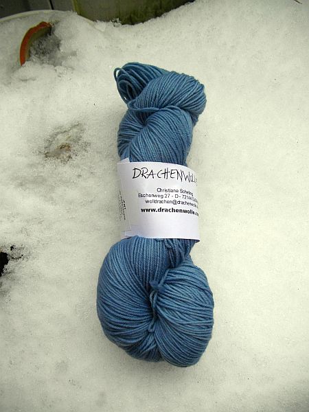 Verwendetes Garn: Drachenwolle, Merino hochfein, 130g/400mLL, Farbe: semisolid Rauchblau (diese Färbung gibt es leider so nicht mehr bei Drachenwolle)