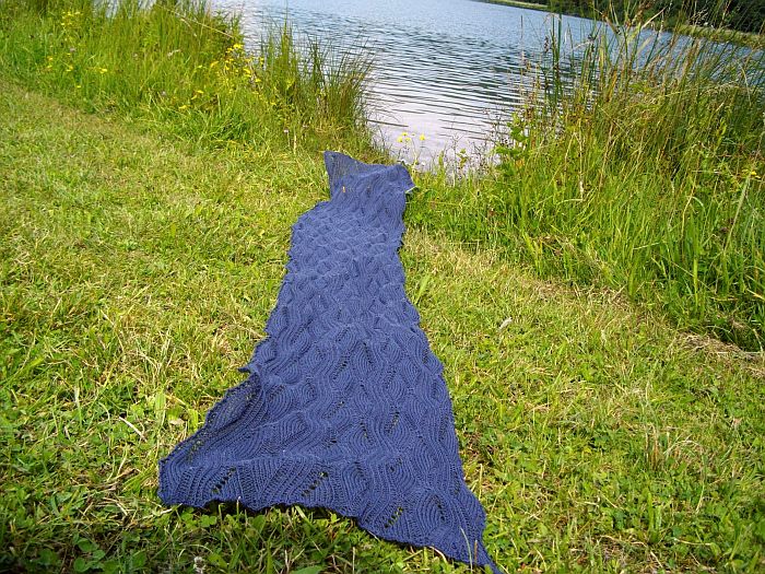 Jedenfalls machte das Muster großen Spaß (auch wenn es letztendlich dennoch, aufgrund Zeitmangels und manchmal auch mangelnder Stricklust, ganze 7 Wochen bis zur Fertigstellung dauerte) und es kommt mit diesem Garn auch ganz wunderbar plastisch zur Geltung.
