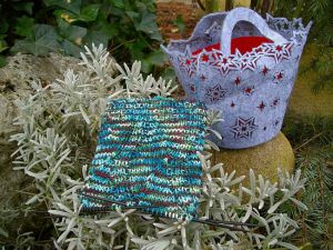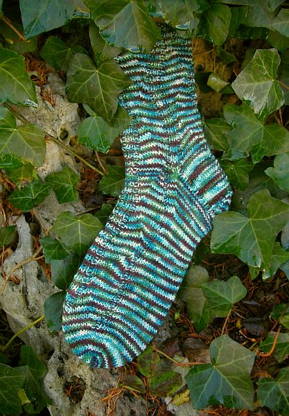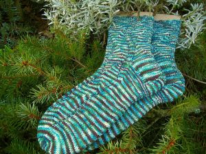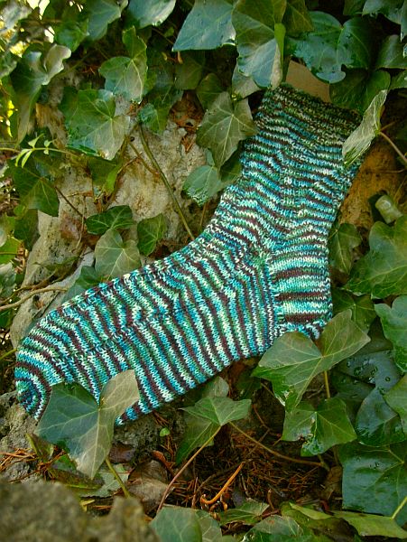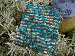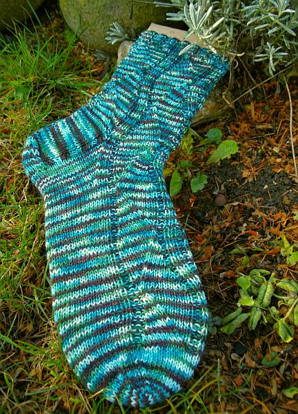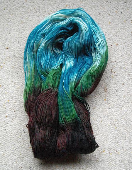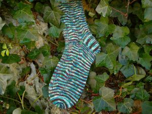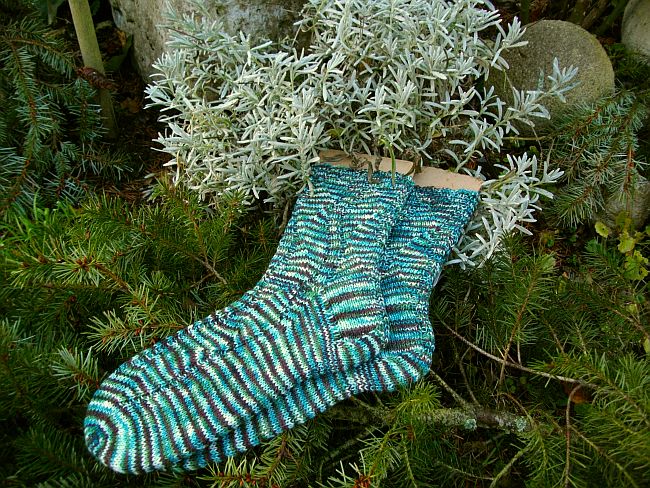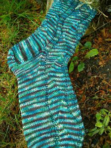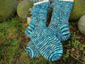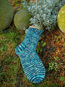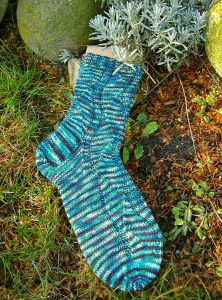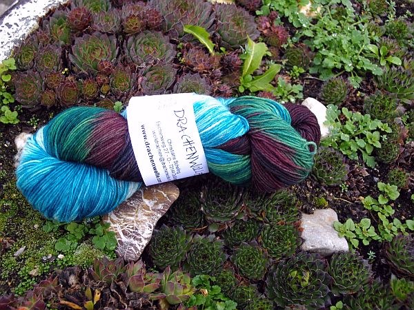 Garn: Drachenwolle, handgefärbte Sockenwolle in der Färbung “Eisblumen” (aus dem Oktober Vollmond 2012)