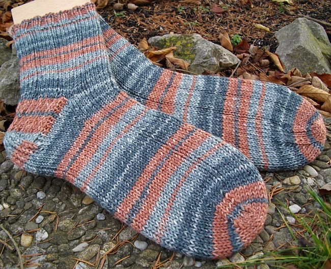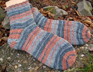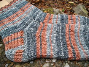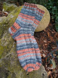 Bei einem alten Sockenpaar hatten wir damals einen Test gemacht und die typischen Tupfen auf die Sohle gesetzt, die herkömmliche Stoppersocken üblicherweise an der Sohle haben. Diese waren aber eher unangenehm am Fuß, weswegen wir es mit diesen Linien versucht haben, welche sich bestens bewährten.