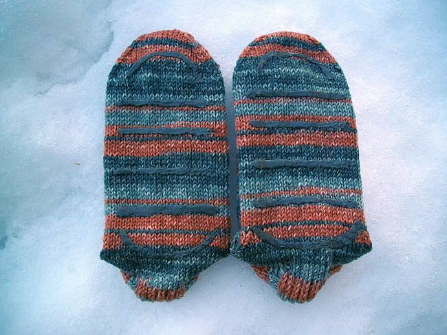Hier noch ein Bild der Sohle, “verziert” mit Sock Stop.