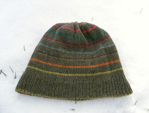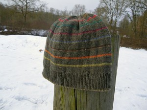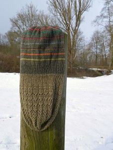 Die Zunahmen nach dem Bündchen beim glatt rechtsgestricken Mützenteil habe ich nach jeder 6. Masche per “m1r” gemacht (gefiel mir besser so).