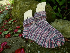 Einfache Stinos mit langem, krempelbaren Rippenbündchen, gestrickt mit Nadelstärke 2,5mm. Der Verbrauch bei Gr. 40/41 lag bei 79g. Das Garn habe ich vor einigen Jahren bereits mal bei Rewe erstanden und nennt sich “Comofort Color”, Farbnummer: 113b.05.