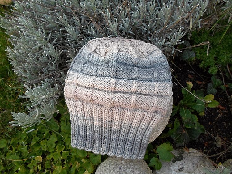 Hatte ja als Vorlage für die passende Mützenhöhe meine zuvor gestrickte braune Mütze und wollte sie nicht höher haben, weil ich dieses “Gebeutel” am Hinterkopf nicht so gerne mag. Für mich muss eine Mütze gut am Kopf sitzen.