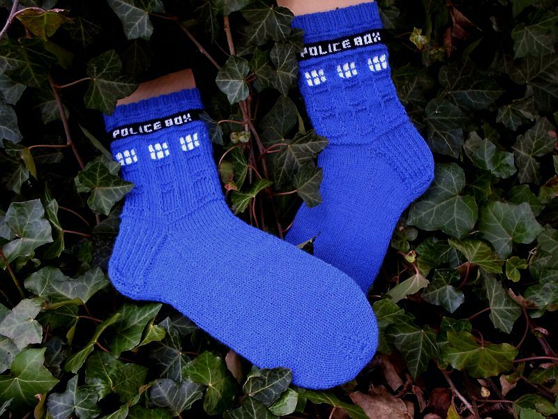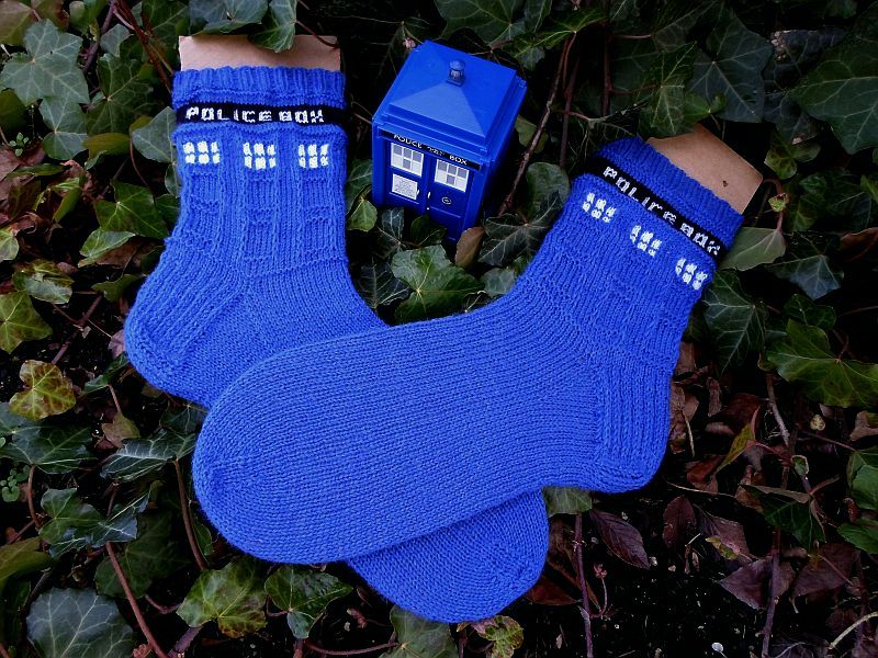 Muster: Police Box Socks (by Audry Nicklin), freie Anleitung in engl. Sprache mit Mustercharts.