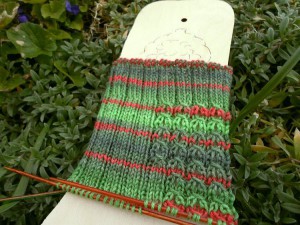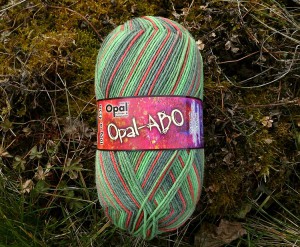 Verwendetes Garn: Opal Sockenwolle aus dem aktuellen Abo März 2016. Das Knäuel wird ab Ende August als Bestandteil der Opal Kollektion “Schafpate VIII” erhältlich sein. Farbbezeichnung: “Ruhezeit”.