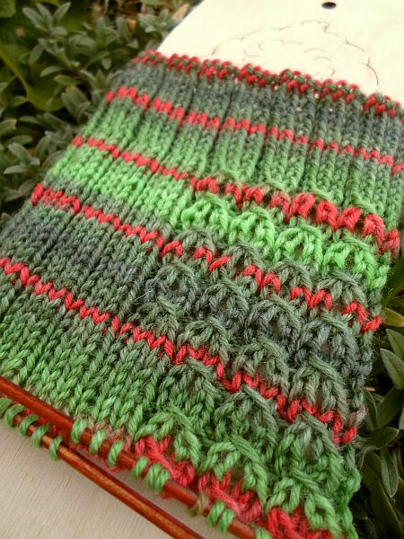 Das Muster habe ich kürzlich entdeckt, besitze aber das Heft dazu nicht. Als das März-Abo von Opal hier ankam und ich dieses Knäuel sah, fiel mir sofort wieder das Muster dazu ein. Deswegen habe ich mir grob die Musterabfolge notiert und nutze die Feuerland-Zöpfchen, da ich diese eh so hübsch und hierzu gut passend finde.