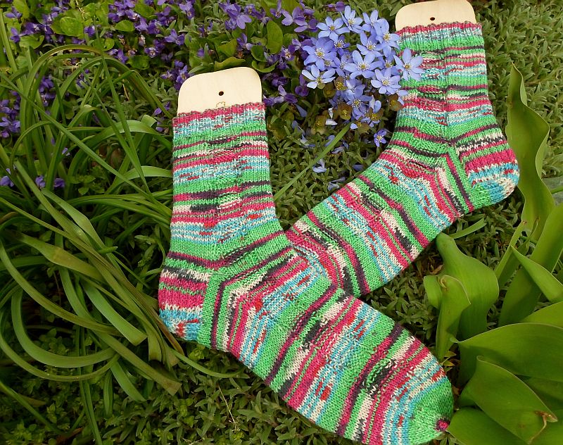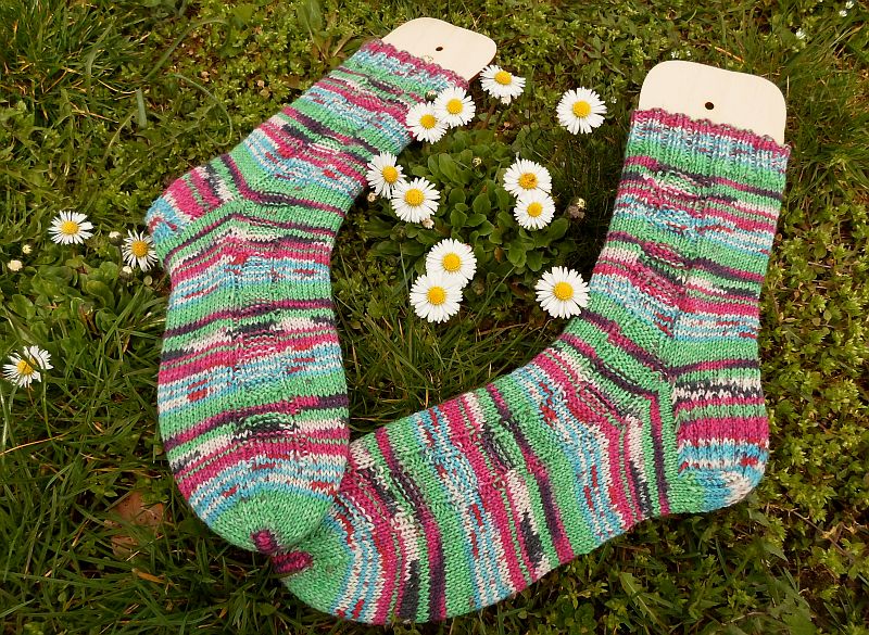 Muster: Small Windows Socks (by Cindy Nartmann), freie Anleitung bei Ravelry in deutscher und engl. Sprache erhältlich.