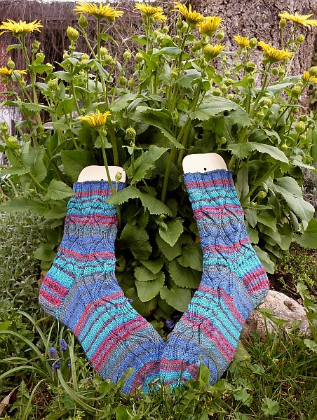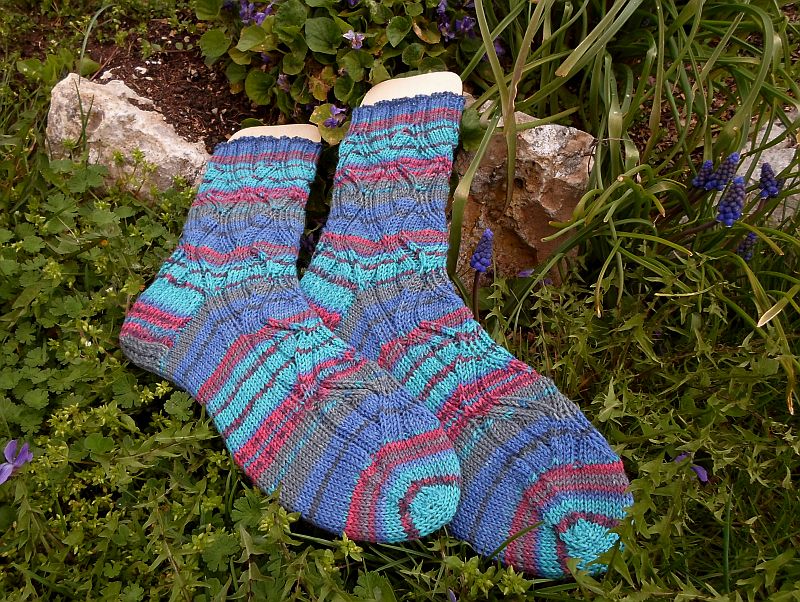 Dieses Paar entstand im Rahmen der “Musterschlacht” in der Opal-Abo Gruppe bei Ravelry. Ein weiteres sehr schönes Knäuel aus dem Opal März Abo 2016. Das Muster hatte ich bereits einmal gestrickt und passte hierfür einfach perfekt.