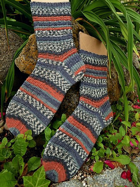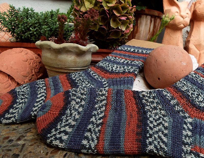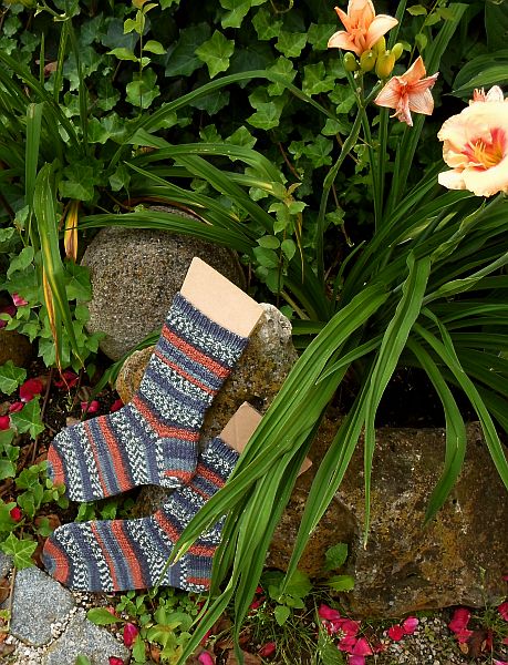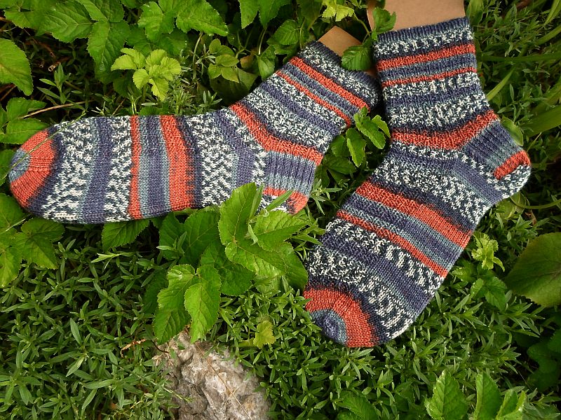Für die Juli-Sockenreise der “Auf Socken durch die Welt” Gruppe bei Ravelry brauchte ich diesmal 3 Anläufe, da meine ersten beiden Versuche mit anderem Garn einfach nicht mit den von mir gewählten Mustern so wirklich stimmig waren.