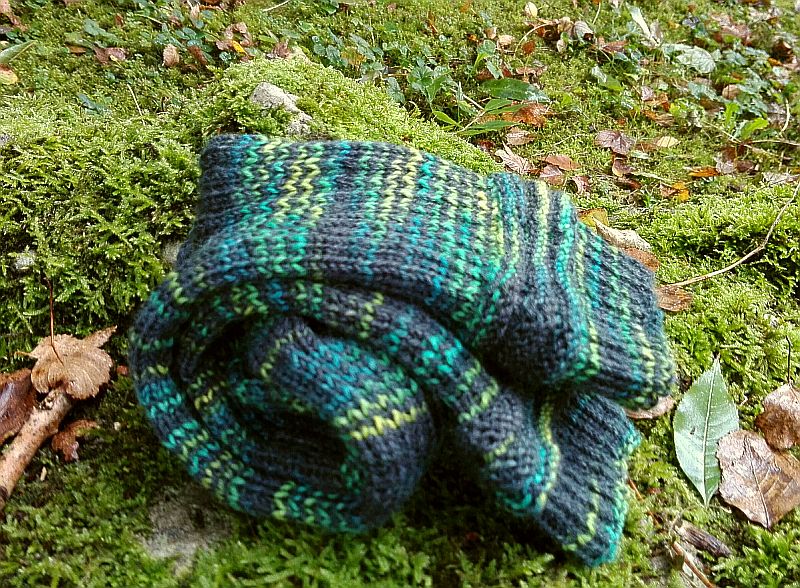 Garn: Sockenwolle aus dem Opal Abo 12/2014. Diese Färbung erschien regulär 2015 in der Kollektion “Classics” unter der Bezeichnung “aufregend”.