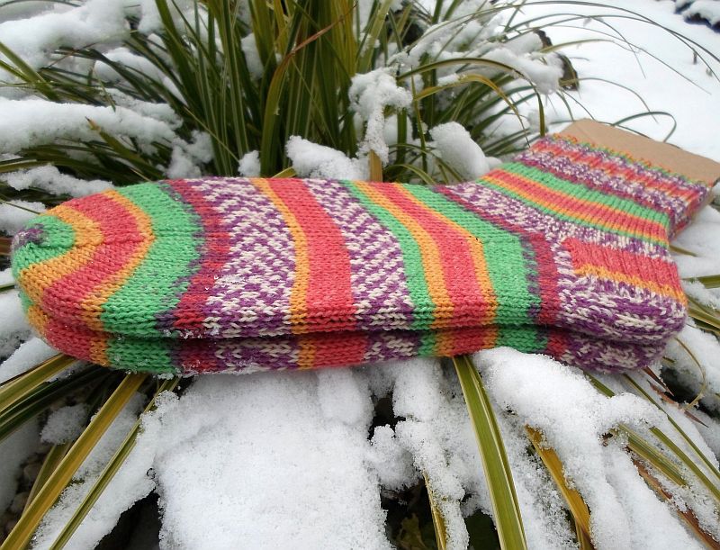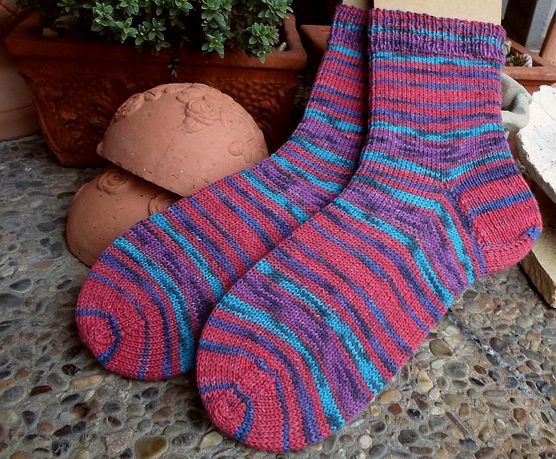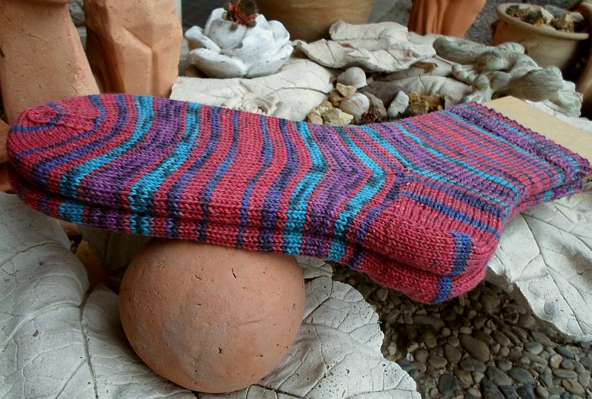 Das pink-türkise Paar wurde ebenso ganz schlicht gewünscht, ohne Muster. Das Knäuel stammt aus dem September Opal-Abo 2016.
