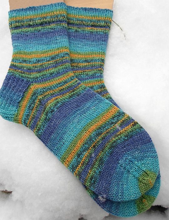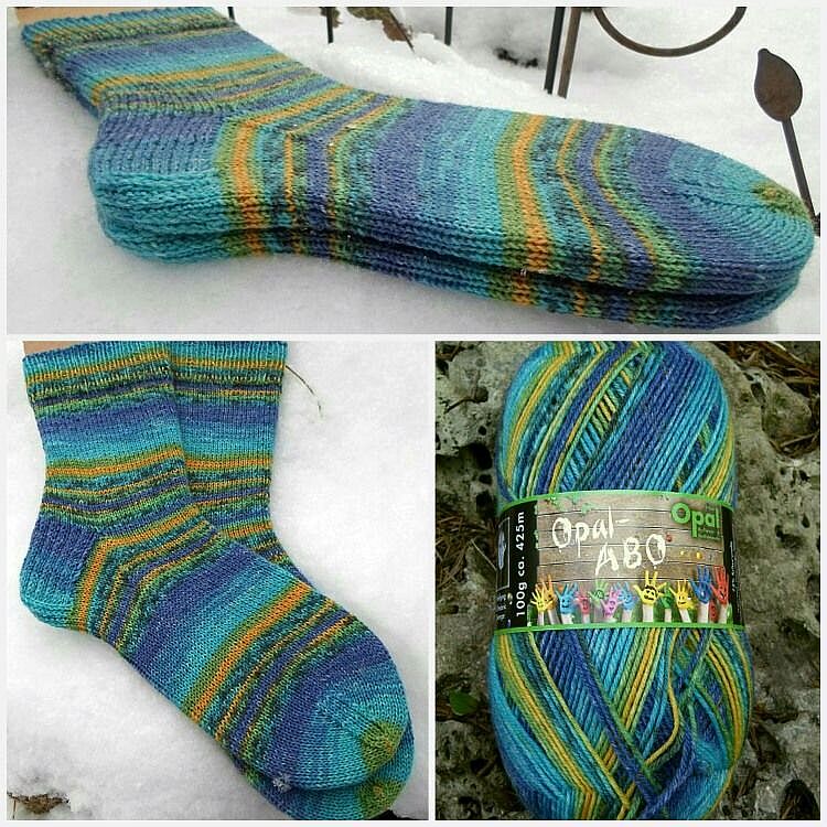 Ein Sockenpaar muss ich irgendwie immer nebenbei in Arbeit haben, sonst fehlt mir was. Und sind auch immer gerne genommene Geschenke. Genau dafür habe ich mir das so geliebte Opal – Abo zugelegt. 😉