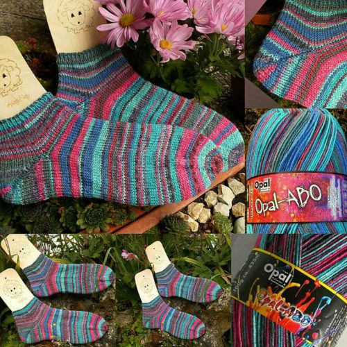 Ein Set, das ich kürzlich verschenkt habe. Das Garn einmal mehr aus dem Opal Abo (Mai 2015). Gesamtverbrauch: 78g (Socken Gr.38/39, 65g und “Fini” 13g, […]