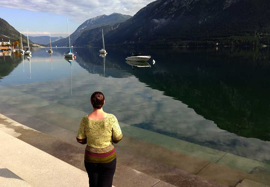 Ich habe den Halsausschnitt ein wenig enger gestrickt als bei Nr.1 und die Ab-und Zunahmen im Taillenbereich noch etwas verfeinert. So sitzt er noch einen Tick besser.
