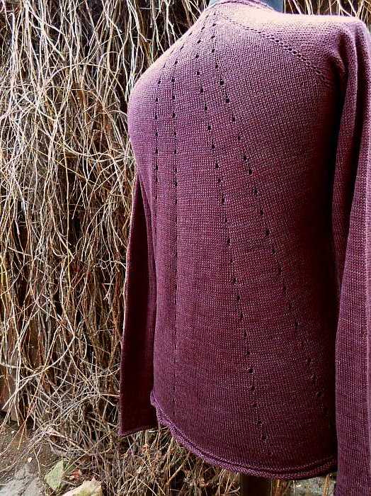 Ich habe mich gegen die in der Anleitung beschriebenen Zunahmen an den Raglanschrägen entschieden und arbeitete stattdessen ganz normal M1R/M1L (aus dem Querfaden).