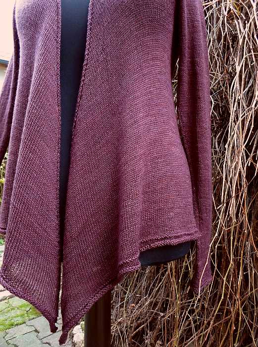 Außerdem bei Lochreihe 21 + 23 die mittleren Umschläge (ebenso durch ssk/2rezus) direkt wieder aufgehoben, da ich die Jacke nicht ganz so weit schwingend wollte, wie sie mir auf manchen Bildern erscheint.