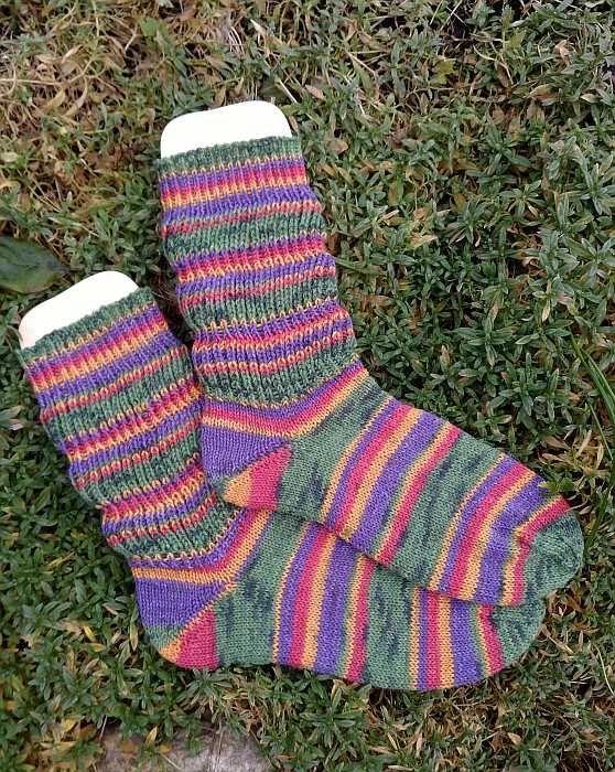 Ich wollte mir schon länger mal “Carmens Shoppersockenvon Petra Koerner (kostenlose Ravelry Anleitung) stricken und dieses Knäuel schien mir dafür besonders passend.